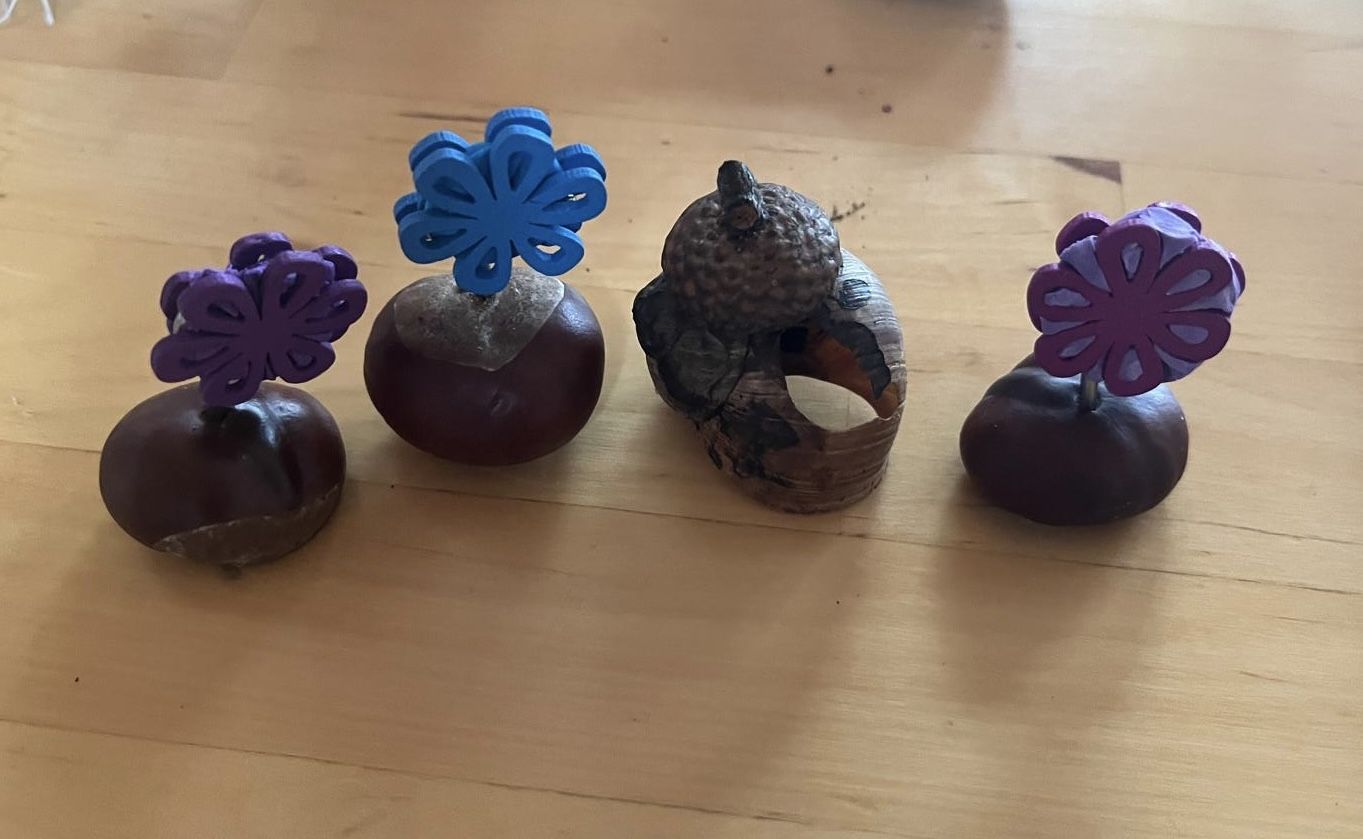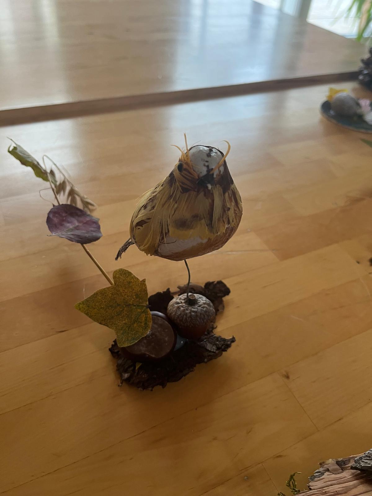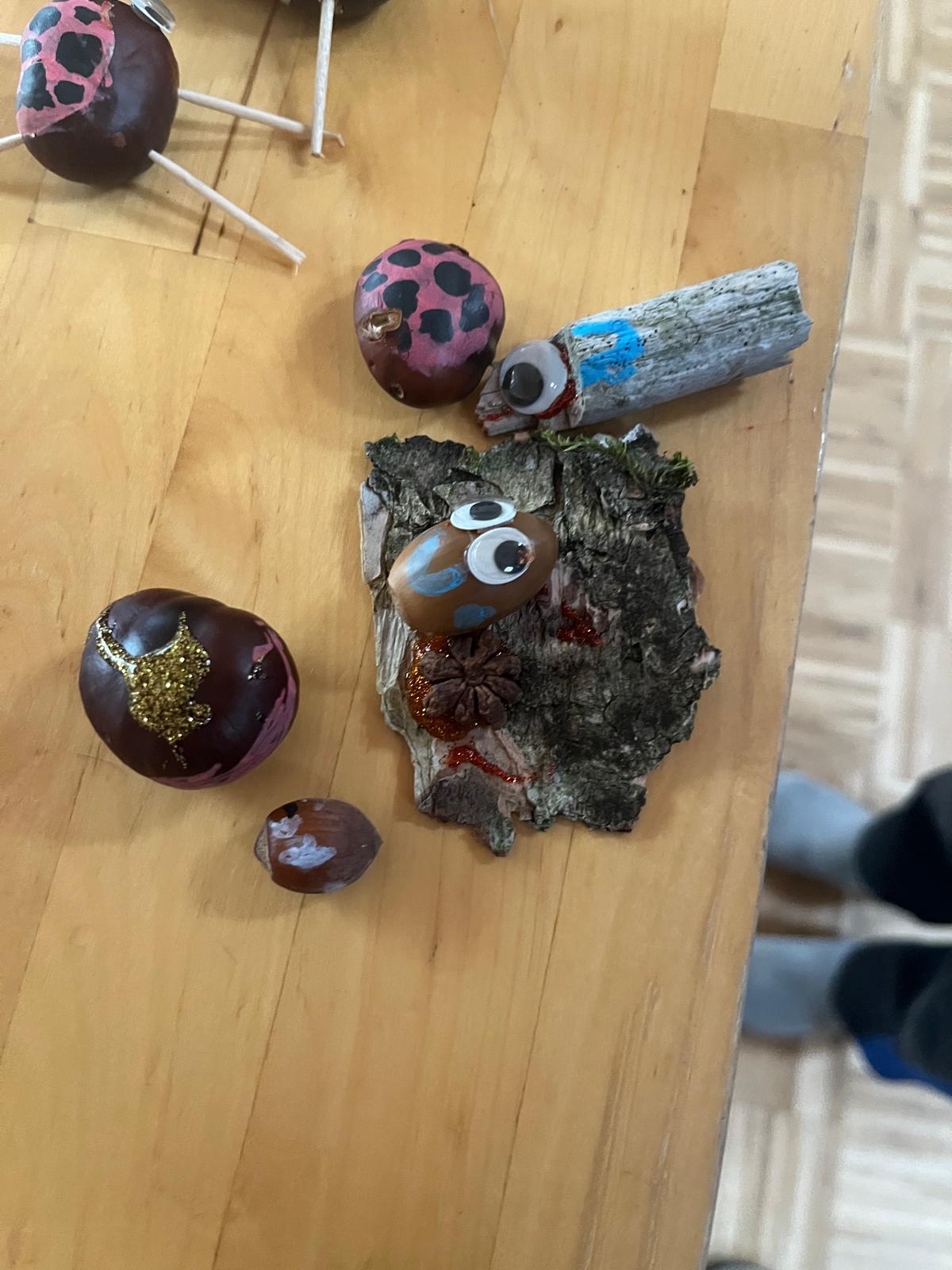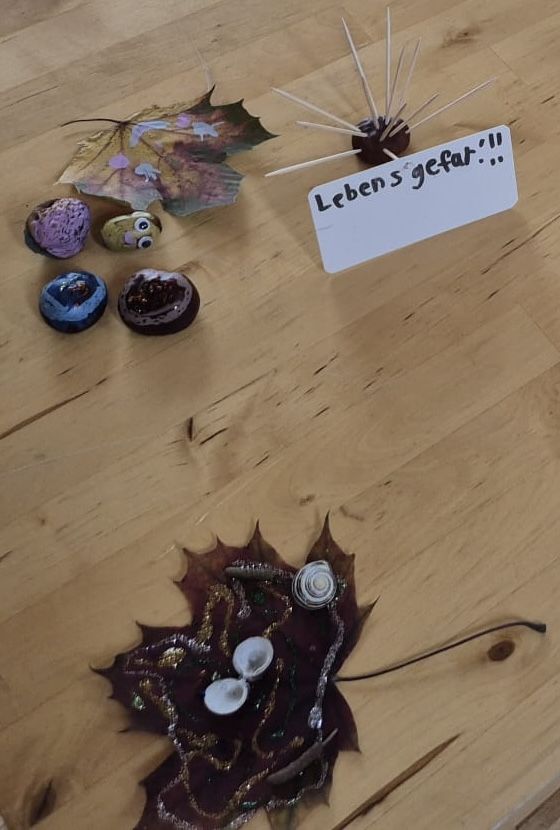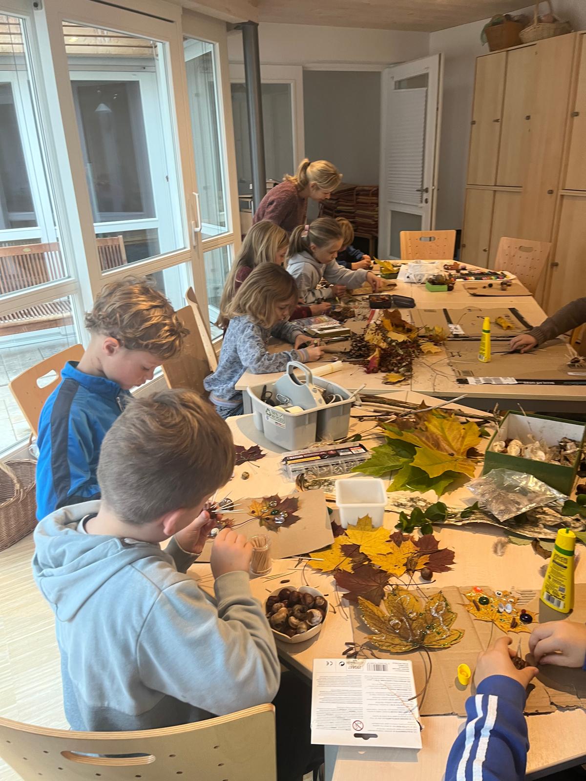 Im Herbst trafen sich die Kinder, um gemeinsam kreativ zu werden. Jedes Kind brachte Herbstmaterial aus der Natur mit – bunte Blätter, knisternde Blätter, Eicheln, Kastanien, kleine Zweige und trockene Blüten. Aus diesen Schätzen entstanden vielfältige Bastelideen. Besonders schön war das Miteinander: Die Gruppe tauschte Materialien aus, half sich gegenseitig beim Basteln und erklärte einander ihre Ideen. Die Kinder fühlten sich ermutigt, Neues auszuprobieren, und entwickelten eine kreative Herangehensweise an das, was die Natur ihnen schenkt. Am Ende des Tages hatten alle stolz ihre Werke präsentiert und ein gemeinsames Gefühl von Zufriedenheit und Zusammenhalt mitgenommen. Der Herbst zeigte sich von seiner farbenfrohen Seite – nicht nur draußen in den Blättern, sondern auch in den Ideen und Kunstwerken der jungen Bastlerinnen und Bastler.