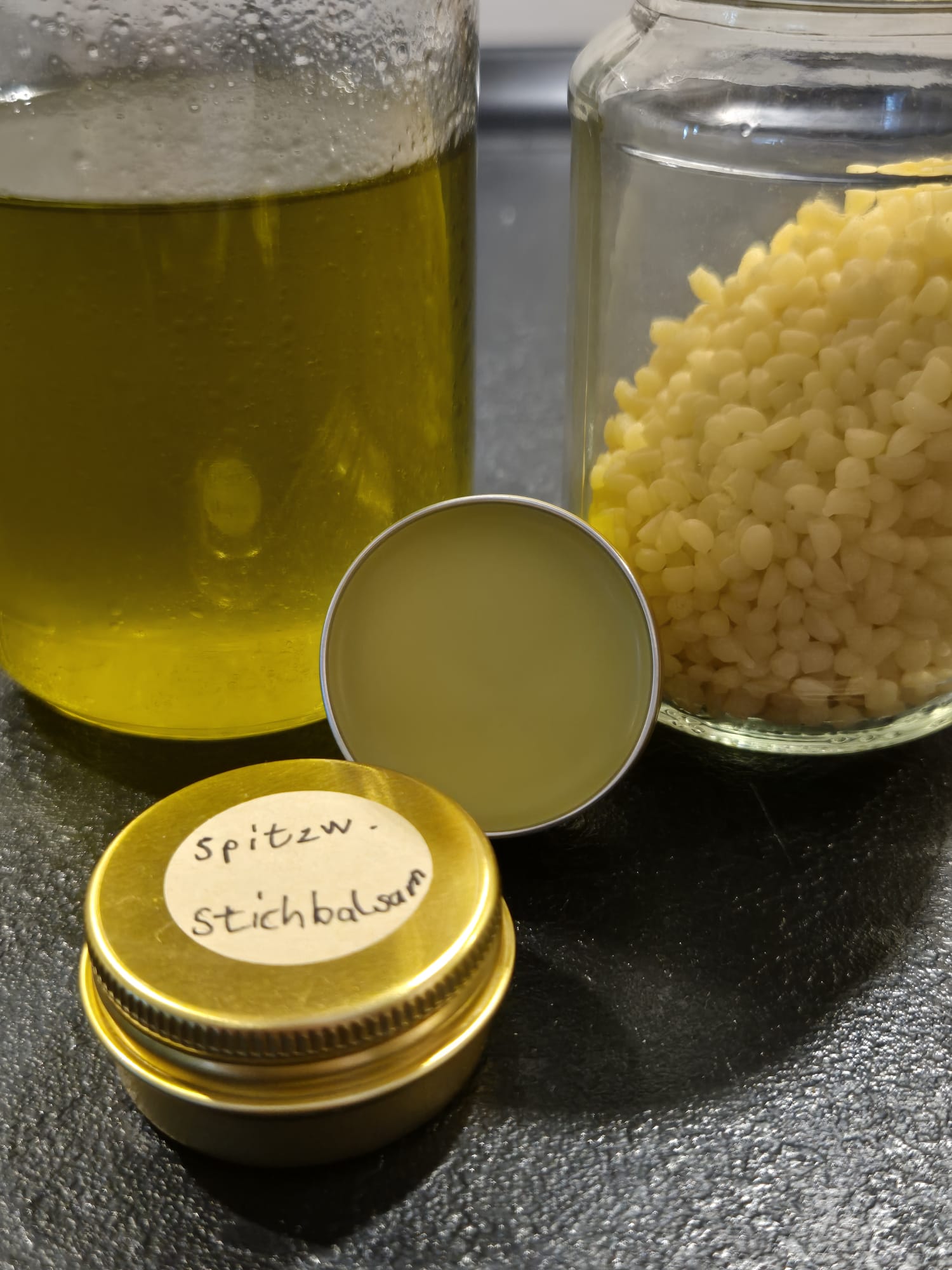 Heute stand unser Thema Wildkräuter im Mittelpunkt. Wir schlenderten über die Wiese, suchten Kräuter und sprachen darüber, wie man Wildkräuter nutzt. Steffi wies auf die Handregel hin: Man darf aus der Natur nur so viele Kräuter mitnehmen, wie in eine Hand passen – kein Übermaß, kein Wegnehmen von Lebensräumen. Im Herbst gab es ja sehr viele Eicheln, wir entdeckten wie sie anfingen auszutreiben und ihre Wurzeln in den Boden schoben. Manche hatten bereits die ersten Blättchen. Neben Gänseblümchen sammelten wir Spitzwegerich und sprachen über seine Verwendungsmöglichkeiten. In der Küche wogen die Kinder die Zutaten für einen Stich-Balsam aus Spitzwegerich ab. Alle Zutaten wurden vermischt und erwärmt und in kleine Döschen zum Abkühlen gefüllt. Diese Döschen durften die Kinder später mit nach Hause nehmen – eine kleine, duftende Erinnerung an den Tag und als Linderung für Mückenstiche. Außerdem bereiteten wir einen Kräuterfrischkäse aus Frischkäse und fein gehackten Wild- und Gartenkräutern zu. Frisch serviert mit Crackern, genossen wir ihn gemeinsam. Ein tag voller Sinneseindrücke, ruhevollen Momenten und praktischer Tipps zum Umgang mit Wildkräutern – wir freuen uns auf das nächste Naturerlebnis!