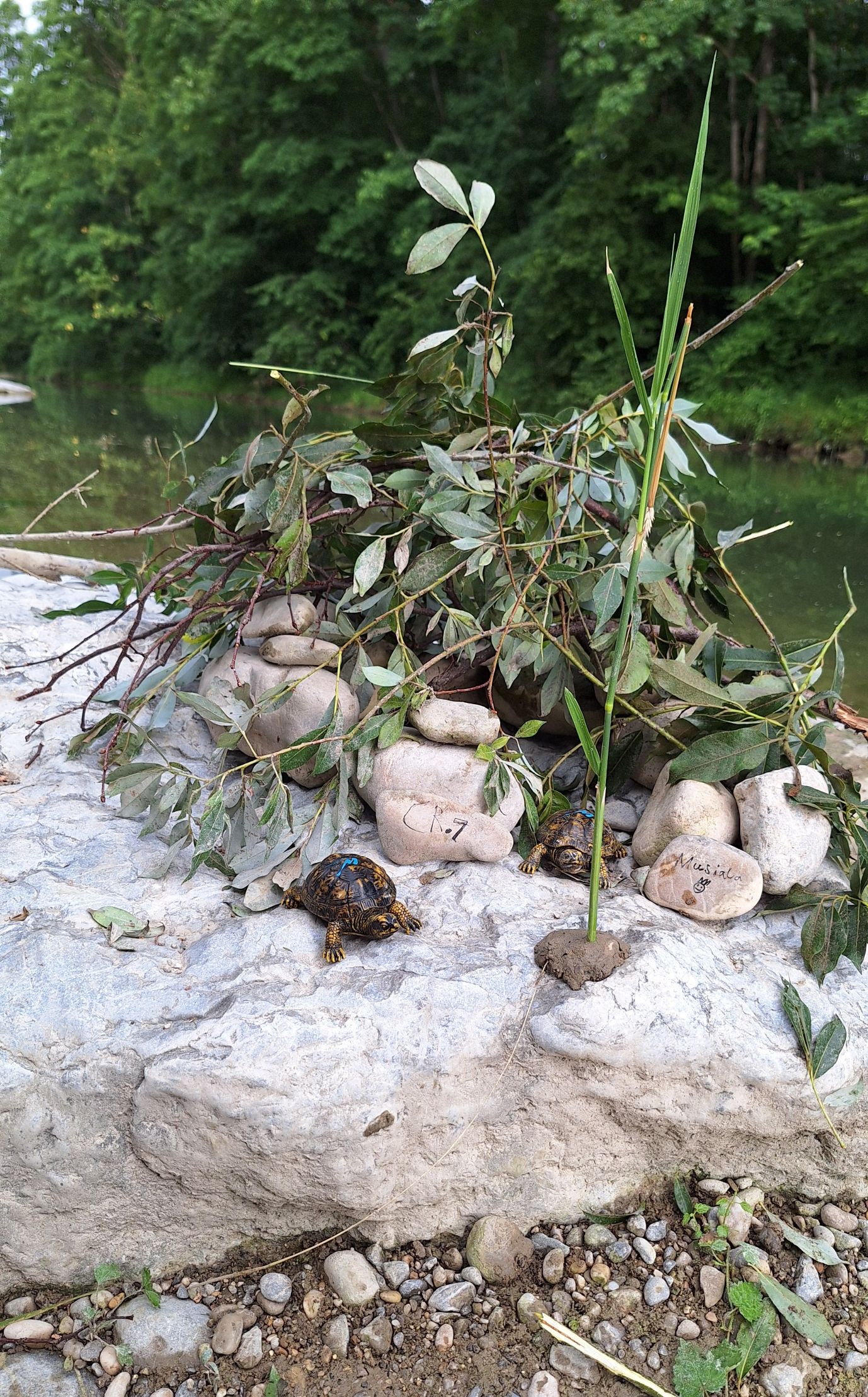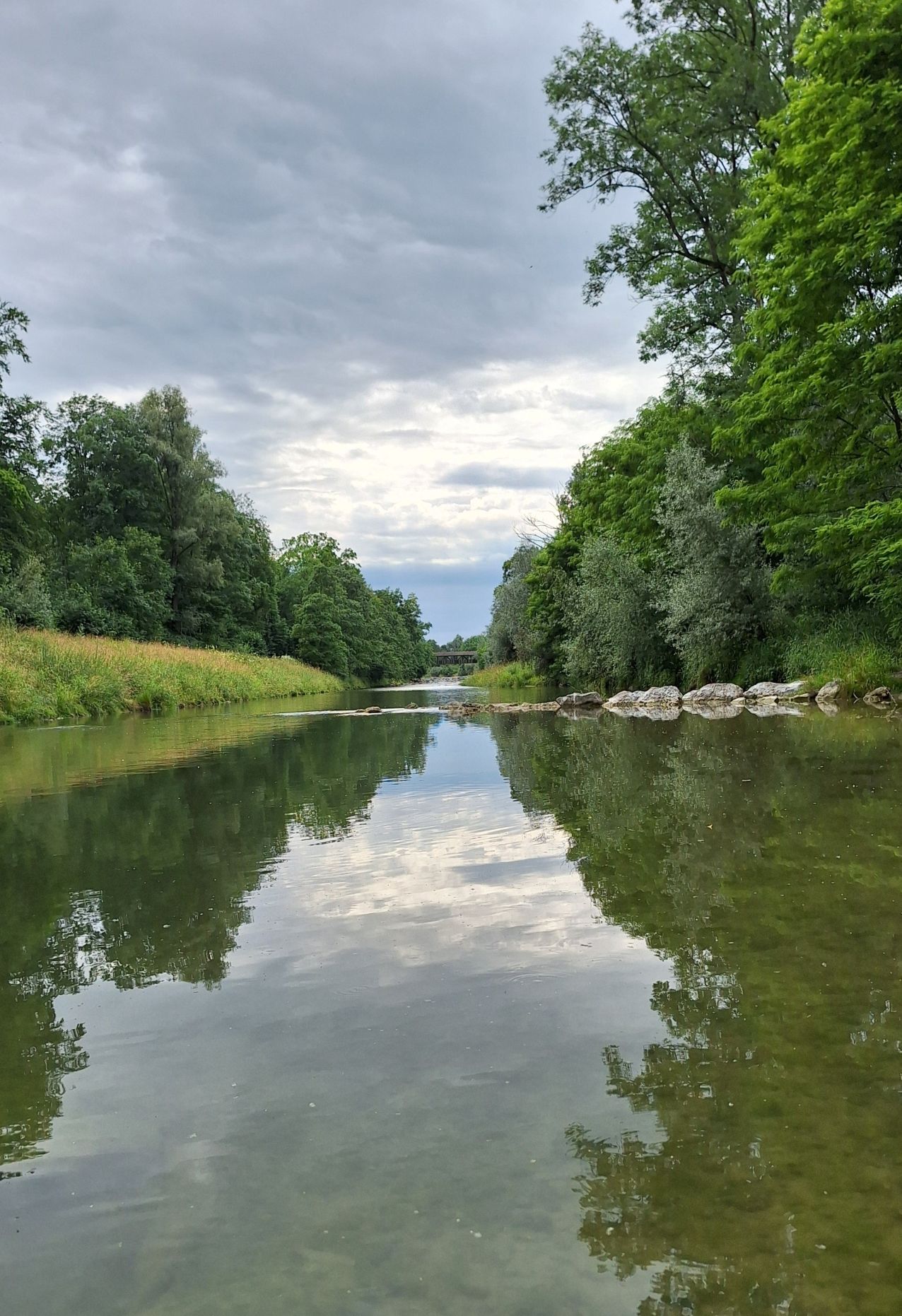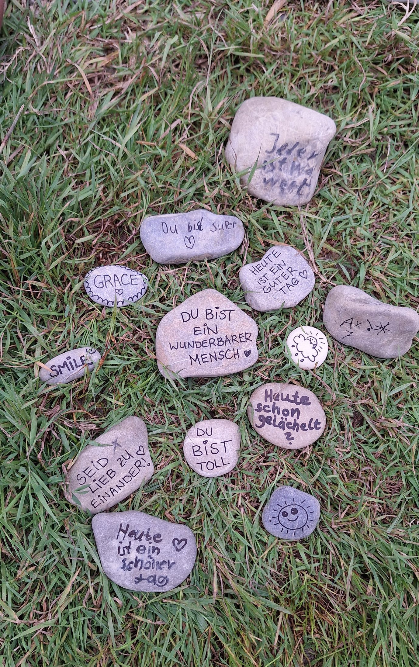 An der Mangfall, nahe der Kunstmühle, konnten wir durchs Dickicht streifen, am Wasser spielen, große und minikleine Fische beobachten und einen merkwürdigen Stein finden, den wir um ein Haar mit einer Schildkröte verwechselt hätten. Mit den Becherlupen ließen sich kleine Wassertierchen toll beobachten. Es gab Kekse und einen überraschenden Regenguss. Zum Schluss hatten wir die Idee, Kieselsteine mit mutmachenden Botschaften zu beschriften und auf dem Rückweg als kleine Überraschung für Spaziergänger am Wegesrand zu verteilen. Uns sind jede Menge ermutigende Botschaften eingefallen, und zum Schluss hatten wir alle die Melodie von Max Raabe im Ohr: „Heute ist ein guter Tag um glücklich zu sein!“ 😊
