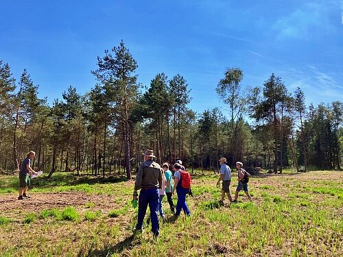 Voller Begeisterung machten sich die Teilnehmenden an die Arbeit, um die zukünftige renaturierte Streuwiese von Ästen und Holzstümpfen zu befreien, die, an anderer Stelle zu großen Haufen aufgeschichtet, Reptilien und anderen Tieren als Lebensraum dienen werden.