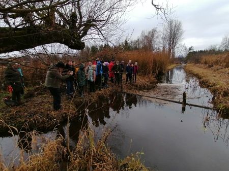 Fast 30 Teilnehmer beteiligten sich wieder an der diesjährigen Nikolauswanderung des BN Wasserburg. Obwohl das Wetter nicht ganz stabil war waren wir sehr erfreut über den Zuspruch. Die Nikolauswanderung ist schon Tradition bei uns findet seit mehr als 2 Jahrzehnten statt. Diesmal war Treffpunkt am Moorparkplatz von Amerang im Landschaftsschutzgebiet "Freimoos". Die Exkursion wurde von den einheimischen Gebietskennern Akos Becker und Michael Peters geleitet. Akos ist Jagdpächter und Fischereiberechtigter im Freimoos und Michael ist 1. Vorsitzender der Bürgerinitiative "BI Freimoos". Neben den vielen landschaftlichen Schönheiten im Freimoos wurde auch auf das seit vielen Jahren bekannte Problem der Plastikgranulatverschmutzung hingewiesen. Die BI Freimoos hat sich zum Ziel gesetzt diesen Umweltskandal auf den Grund zu gehen und die weitere Plastikverschmutzung abzustellen. Nachdem die BI weder von behördlicher Seite (Gemeinde und Landratsamt) und weder von politischer Seite Unterstützung bekommt möcht die BI das Granulat auf eigene Kosten auf die Toxizität untersuchen. Unabhängig von der allgemeinen Abfallproblematik (Plastikgranulat ist Abfall und gehört nicht in die Gewässer und das Moor) erhält das Untersuchungsergebnis bei einem Giftstoffnachweis zusätzlich erheblich Brisanz. Leider kostet die Untersuchung etwa 1.500 - 2.000 €. Leider sind bisher nur etwa 400 € an Spenden eingegangen. Die kleine BI hofft deshalb auf weitere Unterstützung (siehe Anhang).