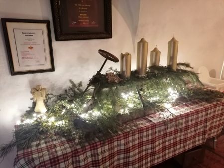 Nach 2 Stunden Wanderung wurde im "Wirt z` Amerang " eingekehrt, wo auch der Nikolaus kam und allerhand zu berichten hatte. Max Seitz las zwei Adventsgeschichten vor. Bei gutem Essen klang der Nachmittag in geselliger Runde aus.