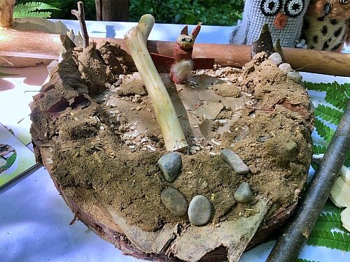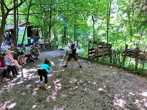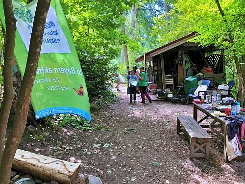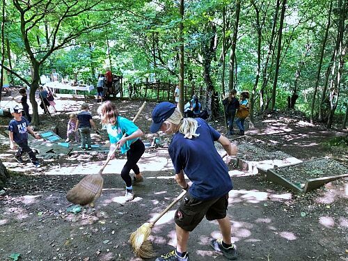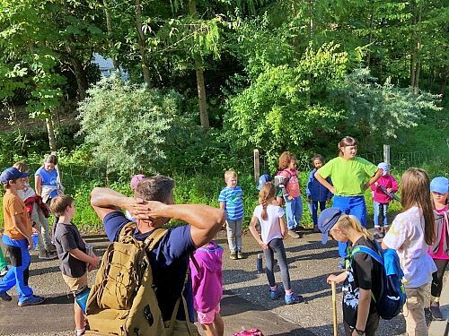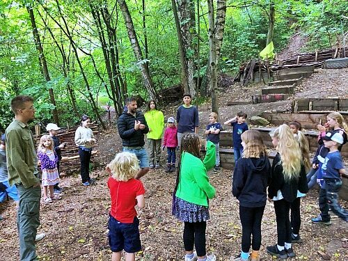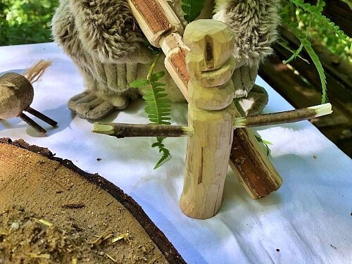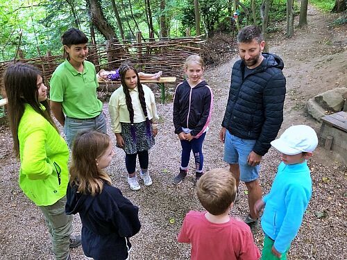 Die Sozialpädagogin und Holzbildhauerin Kathi und der Wildnispädagoge Alex betreuten - zusammen mit Simone und Alois Schrems (beide ehrenamtlich in der Ortsgruppe tätig) - eine Woche lang täglich rund 16 Kinder.
