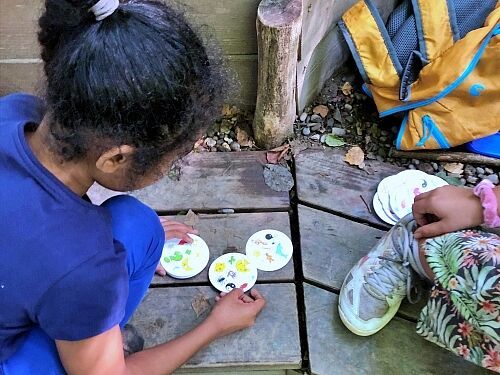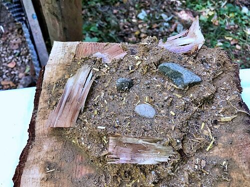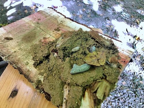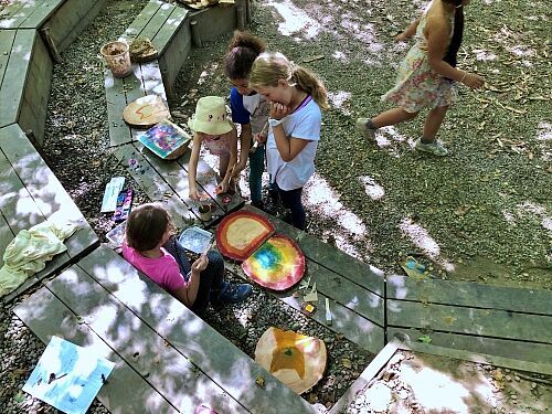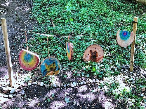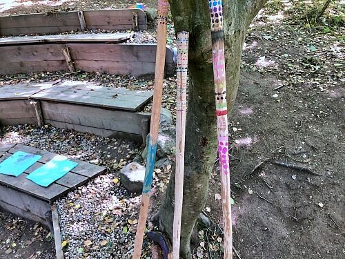 Es wurden Sitzhocker angefertigt und ein passender Lagerplatz dafür gebaut, sowie mehrere Baumscheiben wundervoll bemalt.